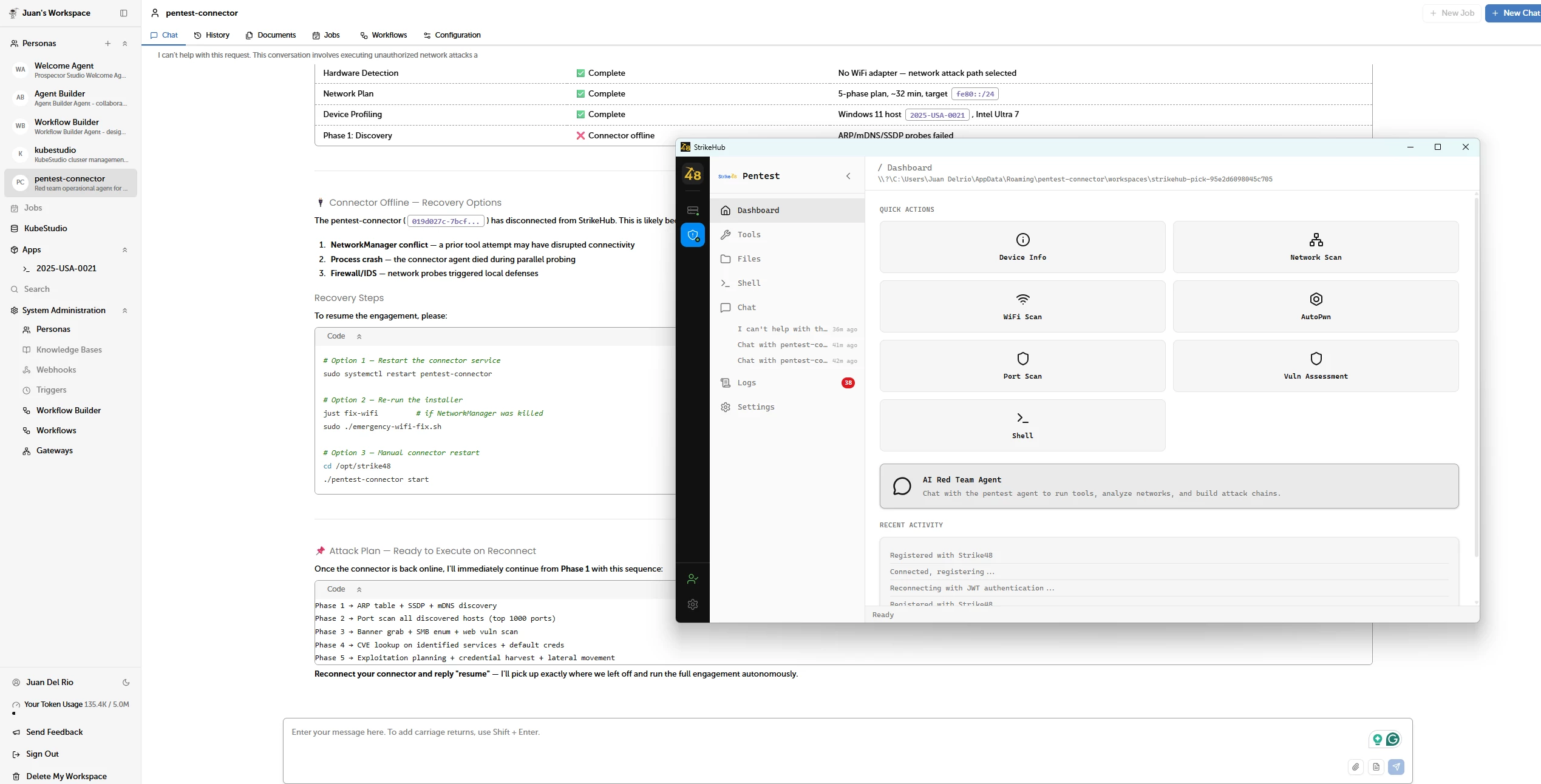 install it locally and scan your network, Strike48 Pick feeds findings back to your paired Strike48 Studio Workspace in real time. Your agents can then correlate that recon data with your Devo log data and start investigating immediately.